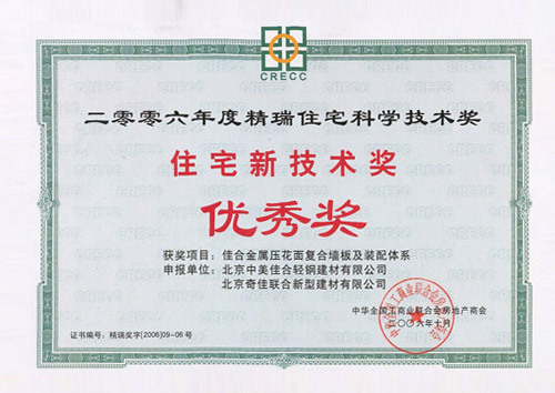 - 2006年榮獲中國第三屆“精瑞住宅新技術(shù)優(yōu)秀獎”